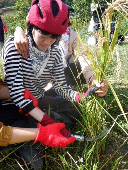 9月30日に生活単元学習「米米くらぶ」の学習として稲刈りを行いました。天候により当初の予定日より1日延期して実施しました。