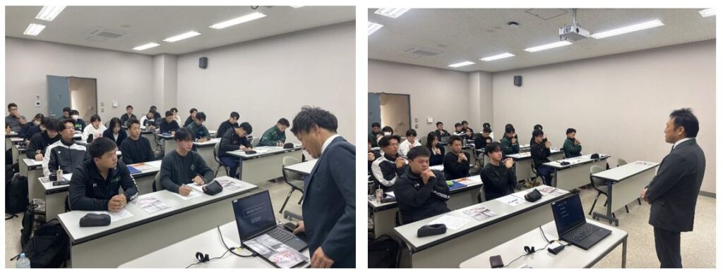 教職員 京都先端科学大学との連携・交流 2025.11.10 10月30日(木)、京都先端科学大学のスポーツ科の学生へ、本校高等部総括主事と副校長が、丹波支援学校の概要や特別支援教育についての講義を行いました。 学生たちは真剣に話を聞いており、演習なども行いながら、知識や理解を深めました。 11月20日(木)には、今回講義を受けた学生たちが本校の生徒向けに考えた体育の授業を一緒に行う予定です。 京都先端科学大学のみなさん、楽しみにしています! Post Views: 27
