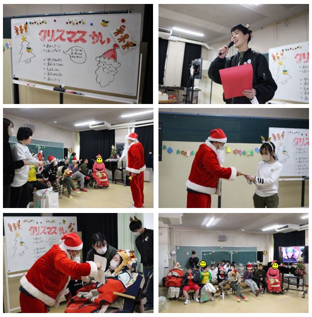 高等部 丹波にサンタがやってきた 2025.12.18 高等部1組~4組のクリスマス会の授業に、サンタクロースがやってきました。 サンタさんの登場に、生徒たちは驚いたり笑顔になったりと、とても和やかな雰囲気に包まれました。 授業では、サンタさんと一緒にクリスマスの歌を歌ったり、サンタさんからのクイズに答えたりしました。クイズに正解すると、サンタさんから一人一人にプレゼントが手渡されました。生徒たちは「やったー!」と嬉しそうにプレゼントを受け取っていました。 音楽と笑顔があふれる、心温まるひとときとなりました。 Post Views: 32