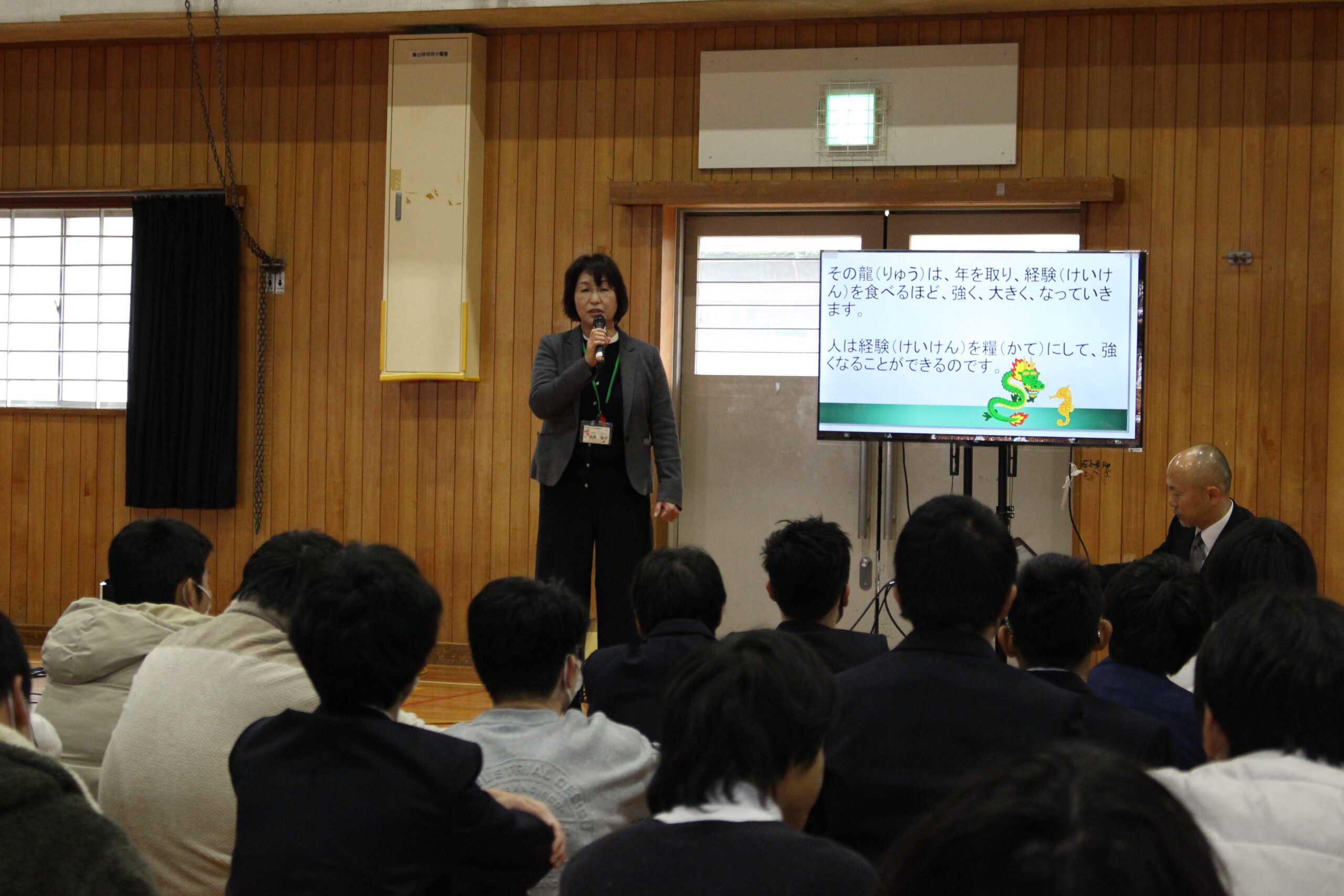 全校 2学期終業式 2025.12.22 19日、2学期の終業式を行いました。校長先生からは、2学期の学習や行事を振り返り、一人一人の頑張りを紹介するお話がありました。 また、各担当から2学期の伝達表彰や冬休みの過ごし方についての話がありました。児童生徒は、充実感と次の学期に向けての目標を胸に、落ち着いた態度で式に臨むことができました。 来年も、どうぞよろしくお願いいたします。 Post Views: 34