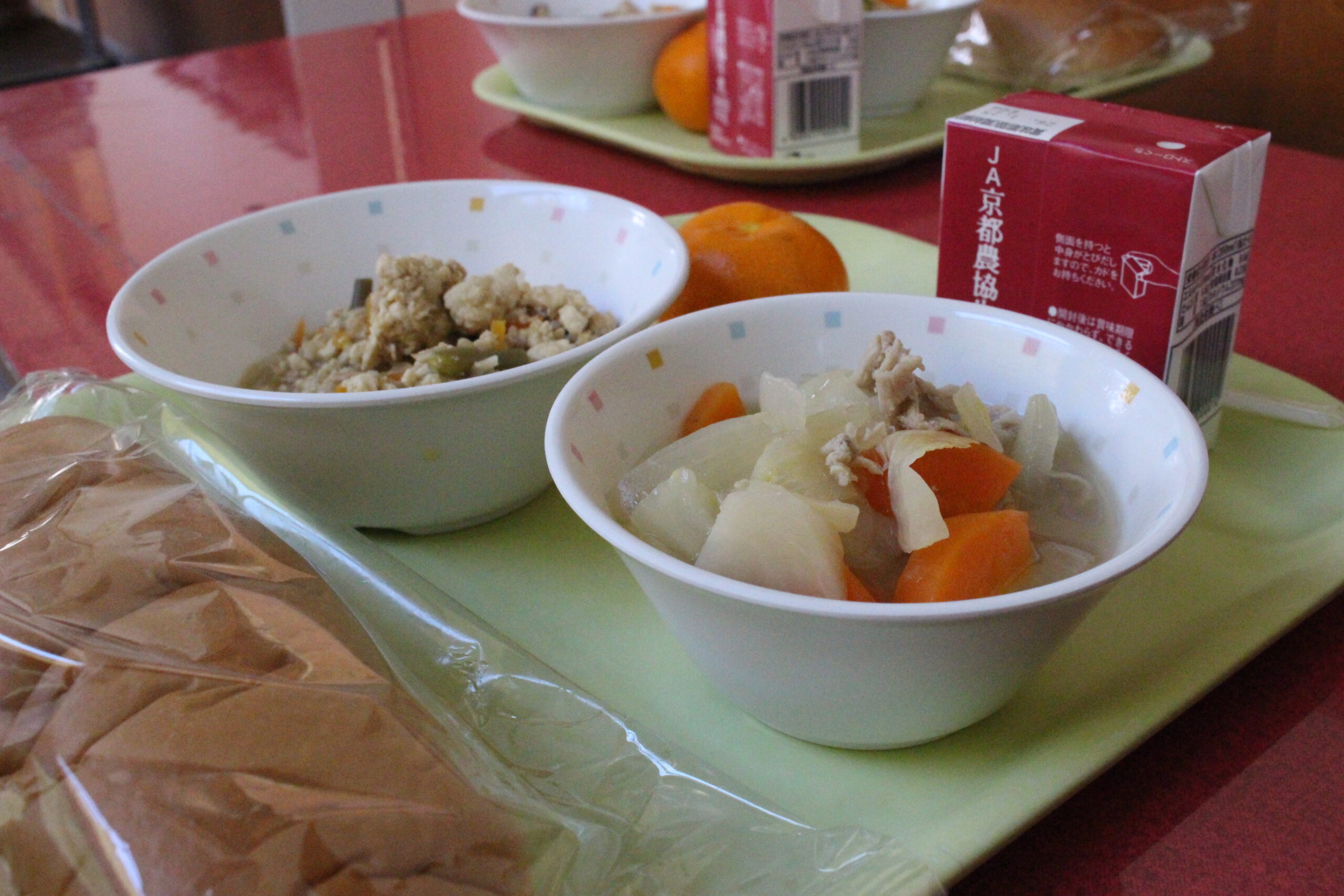 全校高等部 1月13日の給食「冬野菜のスープ煮」 2026.01.14 1月13日の給食「冬野菜のスープ煮」には、高等部農業班の生徒たちが育てた「かぶ」が使われました。 大切に育てた野菜が給食に使われることを、生徒たちはとても楽しみにしていました。 給食前には、校内放送で農業班の生徒から「たくさん食べてください」というお知らせがありました。 自分たちで育てた野菜が給食として提供され、生徒たちは達成感を感じながら、よろこんで給食の時間を迎えていました。 Post Views: 11