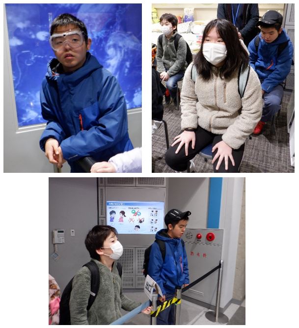 また、実際に防災を体験するため、中学部4組・5組合同で京都市市民防災センターへ校外学習に出かけました。暴風や地震の体験をとおして、災害の恐ろしさを実感していました。