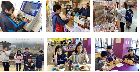 生活単元学習「クリスマスパーティーをしよう」の学習で、サンガスタジアムと亀岡イオンに行きました。この単元では、切符の買い方、電車やレストランでのマナーを学び、友達と校外で活動することができることをねらいとしています。切符は、買い方を何度も確認したことで、自分で買うことができました。サンガスタジアムでは、メニューを決めて注文をすることができました。亀岡イオンでは、どんなプレゼントにするか悩みながら、友達が喜ぶプレゼントを買うことができました。学習した成果を生かすことができ、とてもよい校外学習になりました。
