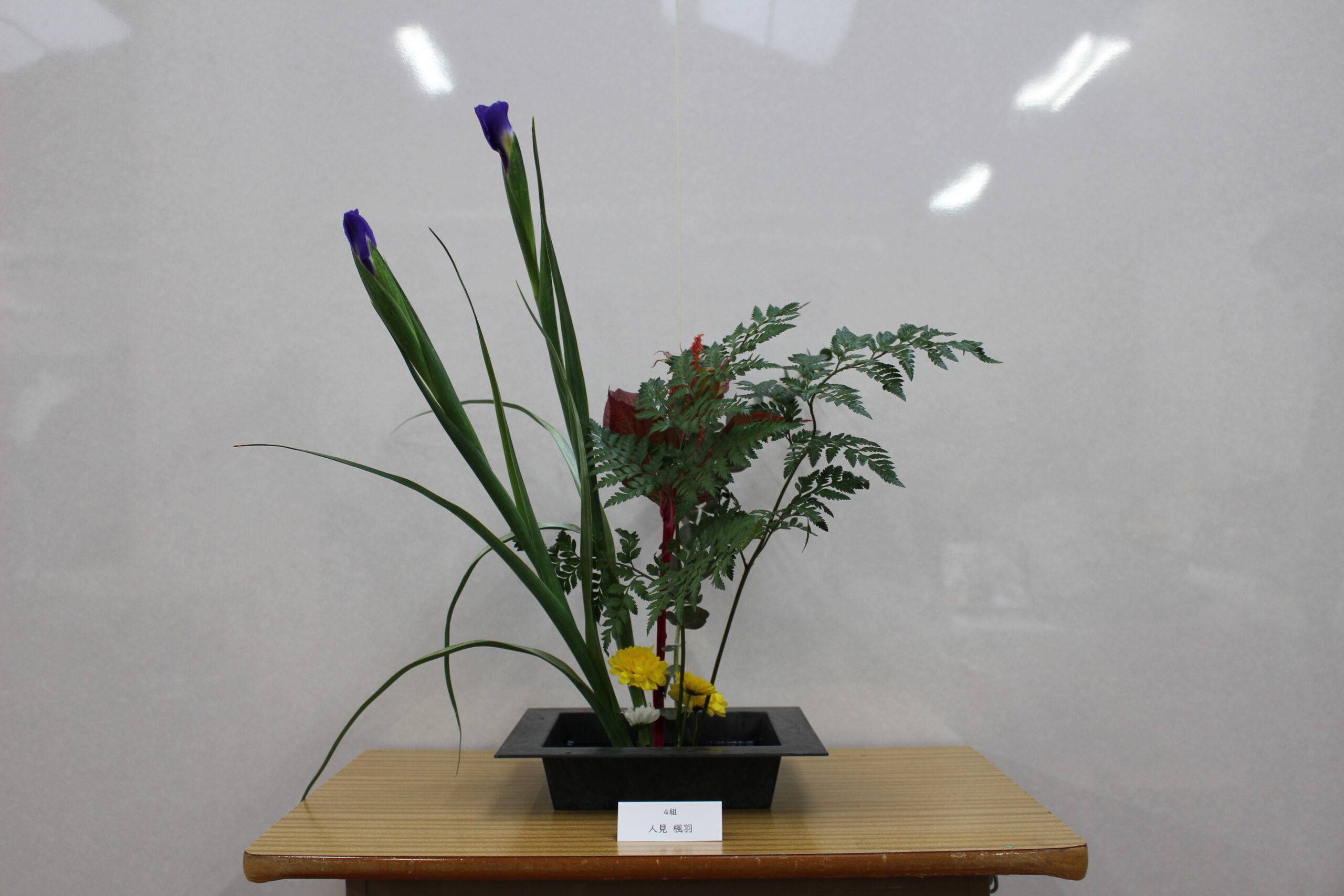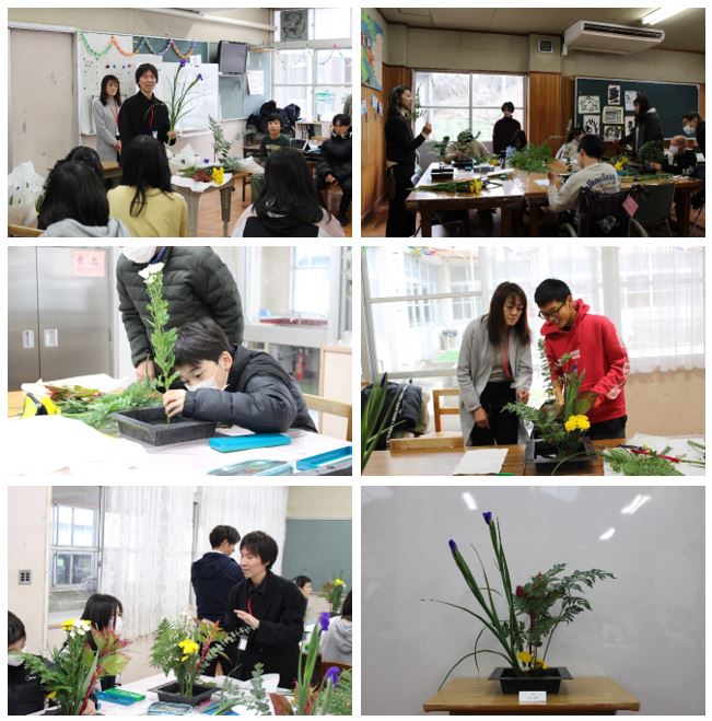 実際の活動では、枝の曲げ方や花の切り方を工夫しながら、一人一人が思い思いに花を生けました。ほとんどの生徒にとって初めての体験でしたが、講師の先生の分かりやすい指導のもと、集中して取り組む姿が見られました。活動の中では、生徒一人一人が創意工夫を凝らし、意欲的に取り組んでいました。