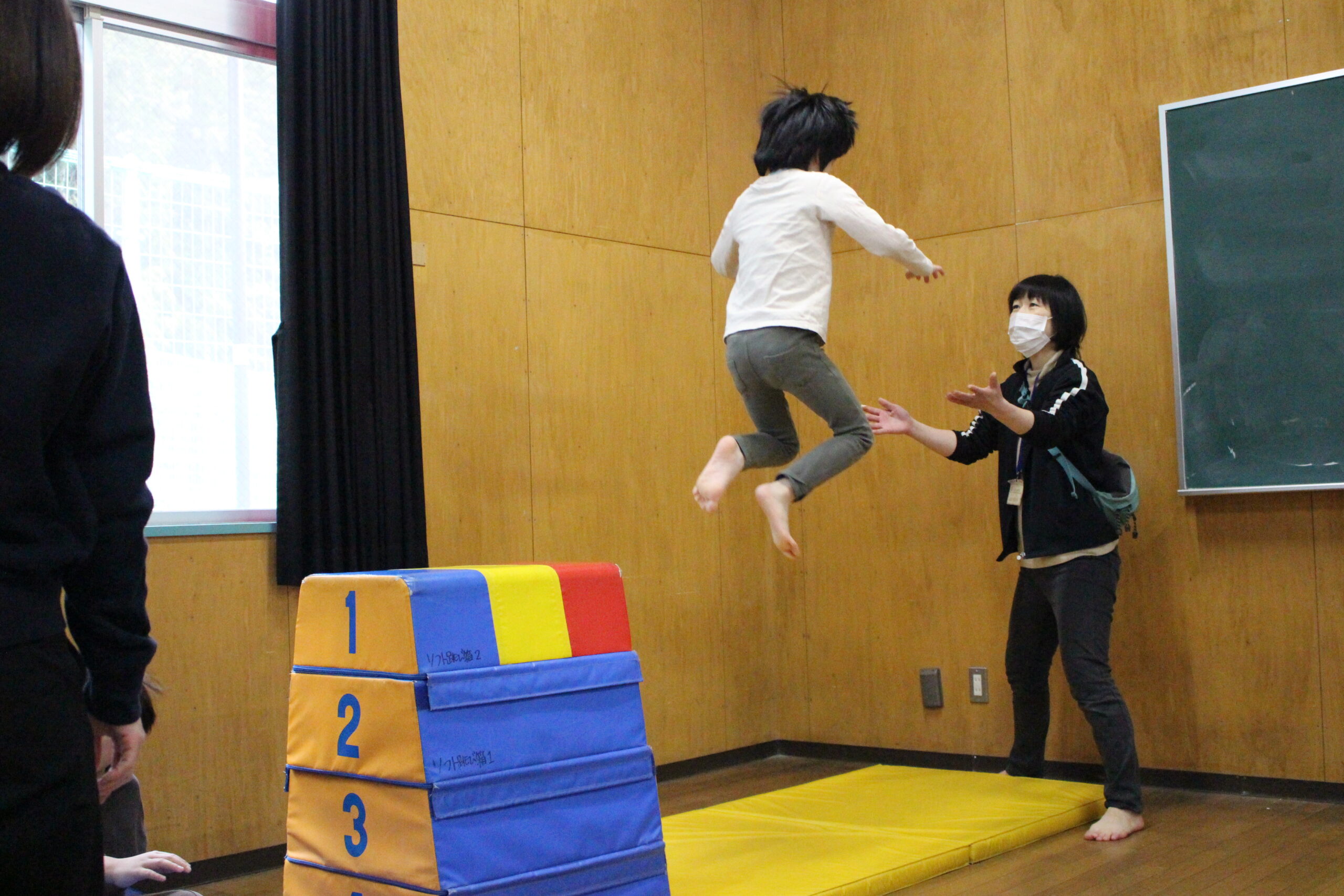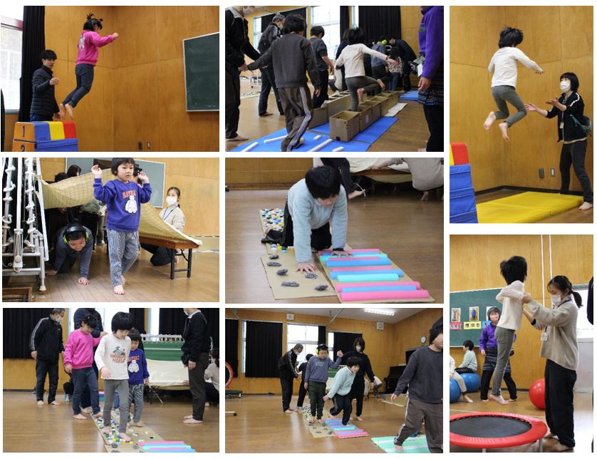 小学部 朝からしっかり動いて、学習の土台作りをしよう! 2026.01.27 1日の始めに思い切り体を動かし、様々な感覚を感じることで、1日安定して過ごせるようにするための取り組みです。 活動が始まる前からBプレイルームに集まり、それぞれ好きな遊具や道具で楽しそうに体を動かしています。音楽が鳴ったら活動がスタート!指導者と一緒によじ登ったり、飛び降りたり、跳んだり、くぐったり・・・様々な体の動かし方をしています。朝、不安定だった児童も、思い切り体を使い活動をしている内に徐々に落ち着き、すっきりとした表情で次の活動に向かいます。 Post Views: 35