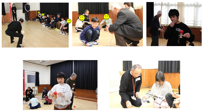 小学部 冬もあそぼう(生活単元学習) 2026.01.27 1月23日(金)小学部6組と16組が合同で亀岡市老人クラブ連合会の方3名を講師にお招きし、冬の遊びの学習をしました。こまやけん玉、めんこ等の技を見たり教えてもらったり、楽しく取り組みました。日本の伝統的な遊びの楽しさを味わう貴重な時間となりました。 Post Views: 31