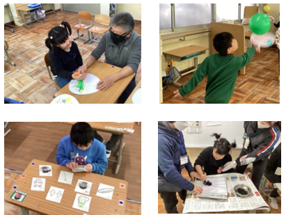 小学部 遊びの指導「ふゆをたのしもう」 2026.02.04 遊びの指導「ふゆをたのしもう」の学習では、冬ならではの遊びや伝統文化に親しみました。子ども達は、うちわに絵や飾りをつけて羽子板を作り、風船を羽根に見立てて元気いっぱいに羽根つきをして遊びました。また、自分だけのかるたを作り、みんなでかるた大会をしました。書初めにも挑戦し、大きな筆を使って自由に書くことを楽しみました。活動を通して、自分で道具を作って遊ぶ喜びや、正月の伝承遊び・文化に触れる楽しさを味わうことをねらいとしています。友達と関わりながら、冬の季節を感じる豊かな学びの時間となりました。 Post Views: 6