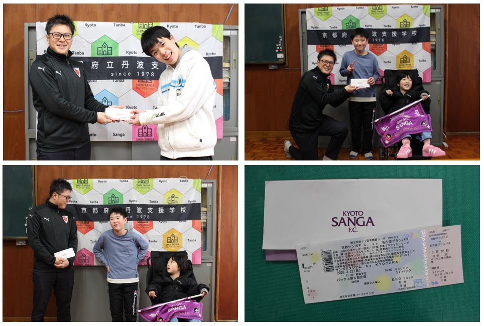 児童生徒たちはチケットを受け取り、とても嬉しそうな様子でした。試合観戦を通して、京都サンガF.C.を身近に感じながら、みんなで応援したいと思います。