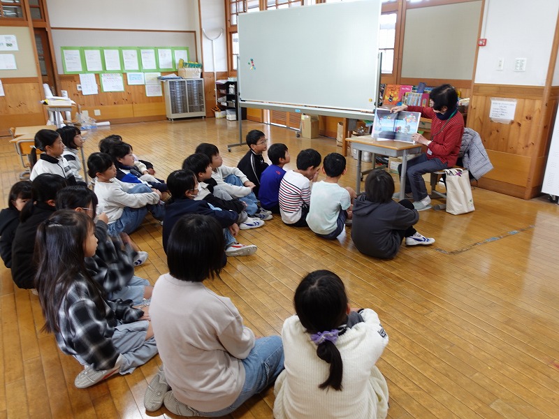 2025年11月1日 / 最終更新日時 : 2025年12月12日 学校管理者 学校ブログ お話会 お話支援ジャーさんによるお話会がありました。低学年には「3びきのこぶた」「わたしのせいじゃない」の2冊の読み聞かせ、高学年には「よっちゃんのビー玉」の読み聞かせ、そして、手遊び、紙芝居ありのとても工夫された内容のお話会でした。戦後80年ということもあり、「人権」「平和」をテーマに読み聞かせをしていただき、子どもたちは国語科の教材とつなげながら考えることもできました。お話支援ジャーさんの豊かな表現力に感動し、心が動く時間となりました。ありがとうございました。 Post Views: 2
