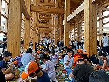 大屋根リングの下で場所を確保し、お弁当をいただきます。