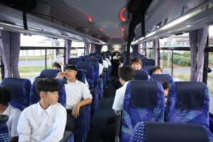 朝6時30分に学校に集合し、バスで会場へ出発。渋滞が心配されましたが、順調に進み、予定通り会場に到着しました。