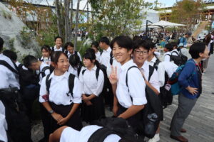 その後は、事前に立てた計画に基づいて班別行動を行い、生徒たちは自分たちでルートを確認しながら、万博の雰囲気を味わい、集合場所を目指しました。各班とも、協力しながら行動し、時間どおりに集合場所に集まれました。