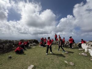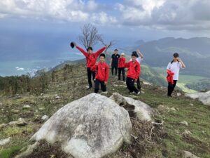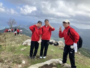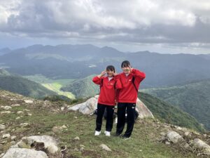 山頂からの景色は絶景で、今までの疲れが吹き飛び、みんな笑顔になりました。あらためて丹後町の素晴らしさを体感し、クラスの絆も深められたとても充実した一日となりました。