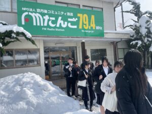 FMたんご様のご協力により、丹後中学校の様子や総合的な学習の時間における探究活動について、ラジオを通じて地域へ発信していただけることとなり、1月24日(土)に3年生8名がFMたんご様で収録を行いました。