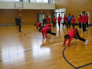2月28日(土)、1・2年生対象に本校体育館にて「トレーニング講習会」を開催しました。講師に凛んぐ(りんぐ)コンディショニングルーム代表の小西達也様をお迎えしました。小西様は日本の陸上界を代表する短距離の多田修平選手の専属トレーナーであり、世界各国を遠征されてます。中学生のためのコンディショニングづくりからトップアスリートを調整される専門的な技術・知識を持っておられる方です。