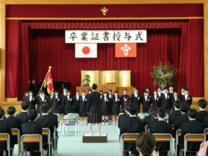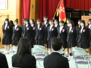 式の締めくくりには、卒業生全員による合唱「遥か」が披露されました。3年間の思いがこもった歌声は、参加者全員の心を打ち、深い感動に包まれた素晴らしい式典となりました。