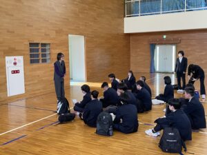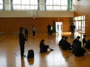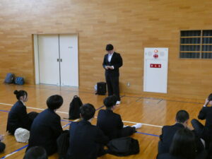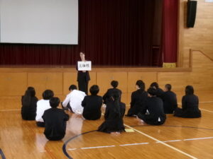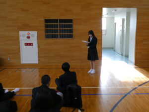 3日間の修学旅行のスタートとして、体育館で出発式を行いました。