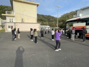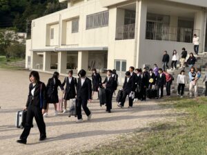 気持ちの良い青空のもと、早朝の集合にもかかわらず生徒は元気よく登校してきました。