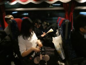 バスの中で本日のまとめを行い、ホテルに帰ります。