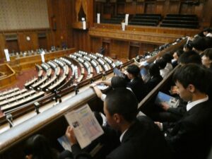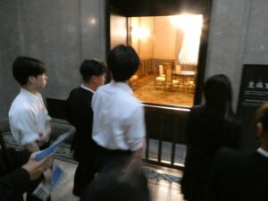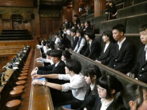 日本の政治を動かす国会議事堂では、衆議院を見学させていただきました。