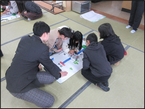 令和7年12月5日、石川小学校4年生20名を対象に「TANGO子ども未来プロジェクト」出前講座を実施しました。今回の出前講座は、京都府立峰山高等学校による「プログラムでロボットを操ろう」(体験)です。峰山高校機械創造科の生徒8名が講師をつとめ、LEGOマインドストーム(ロボット)を使ったレースを通じて、児童らはプログラミングの面白さを実感していました。