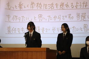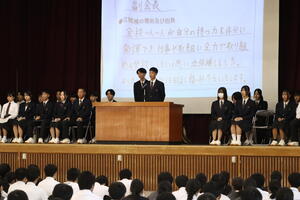 10月15日(水)の6時間目に大体育館において、令和7年度生徒会役員選挙 立会演説会を行いました。各役職の立候補者が自分自身の決意を、応援演説者が推薦理由をそれぞれ述べて全校生徒に投票を呼びかけました。生徒は真剣に各候補者の演説を聞いて、大切な一票を投じました。 開票は即日行われ、来年度の新しいリーダーが選出されました。2学期終業式後の承認式を経て、正式に決定となります。