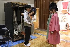 また、開演前、終演後には生徒が舞台のセットを間近で見たり、衣装を試着したり、スタッフの皆さんと話をする機会もありました。