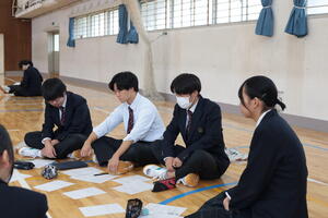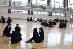 10月22日(水)の6時間目に"ソクラテスミーティング"を行いました。 この取組は、1年生と3年生がいくつかのグループに分かれ、3年生がこれまでの経験を通して得た学びをもとに、1年生に対して学習や進路決定についてのアドバイスを行うという取組です。 自分の経験を精一杯語る3年生の話を、1年生は真剣に聞いている様子でした。