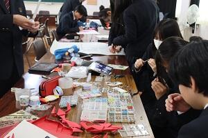 11月8日(土)に控えた緑風祭に向けて、着々と準備を進めています。掲示するポスターの作成や、ハーバリウム作り体験で中に入れる小物の用意、丹後ちりめんを使ったくるみぼたん作りで使う布の切り取り等、生徒たちは楽しそうに準備に励んでいました。 当日は生徒たちがソウゾウする丹後の未来をぜひ見て、聴いて、体験してください。皆様のご来場を心よりお待ちしています!