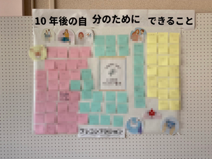 最後に、生徒は今回の学びをとおして、自身が望む十年後に向けたライフデザインを描き、心を体のセルフケアとしてのプレコンアクションを1つ宣言しました。この時間は生徒にとって、今の自分と将来の自分の理想の在り方について真剣に考える良い機会になったのではないでしょうか。