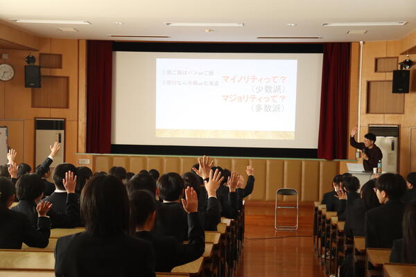 11月26日(水)の6時間目、1年生を対象に性に関する講演会を行いました。ラジオパーソナリティである中尾勇守氏を講師にお招きし、"性的指向及び性自認(性同一性)"というテーマで、"多様な性"や"自分らしさとは何か"について、御自身の経験を交えてお話を頂きました。
