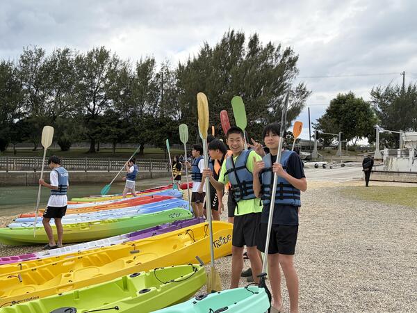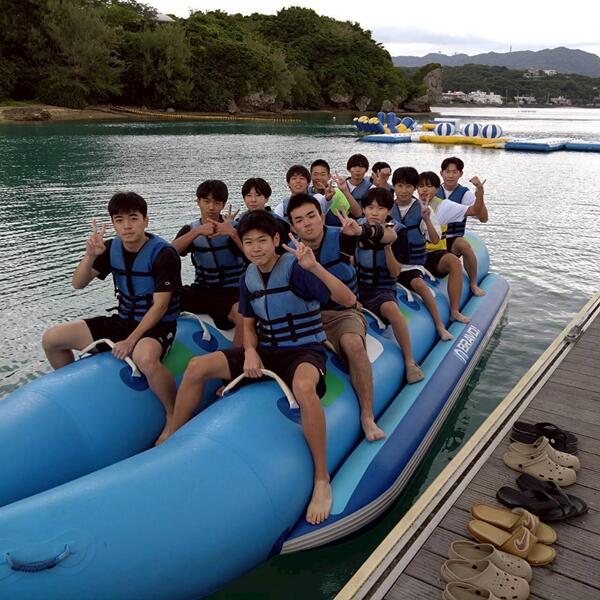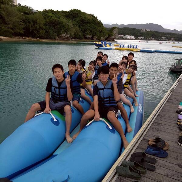 マリン体験ではカヌーとバナナボートを体験しました。あいにくの曇り空ではありましたが、どちらの体験もみんな元気いっぱいに全力で楽しみました!