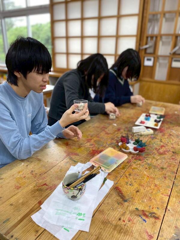 文化体験ではジェルキャンドル作りと美ら海染めを体験しました。貝殻や珊瑚など沖縄ならではの素材を用いて思い出に残るグッズを制作しました。