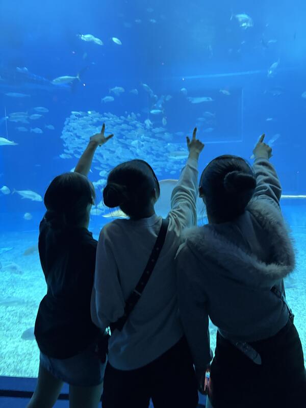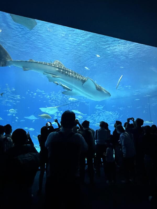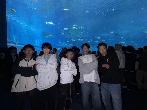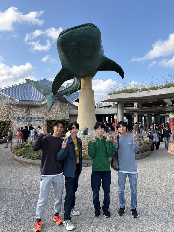 体験学習の後、OKINAWAフルーツランドで昼食をとり、美ら海水族館へ行きました。日本海とはまた違う、沖縄の海を水族館で鑑賞しました。