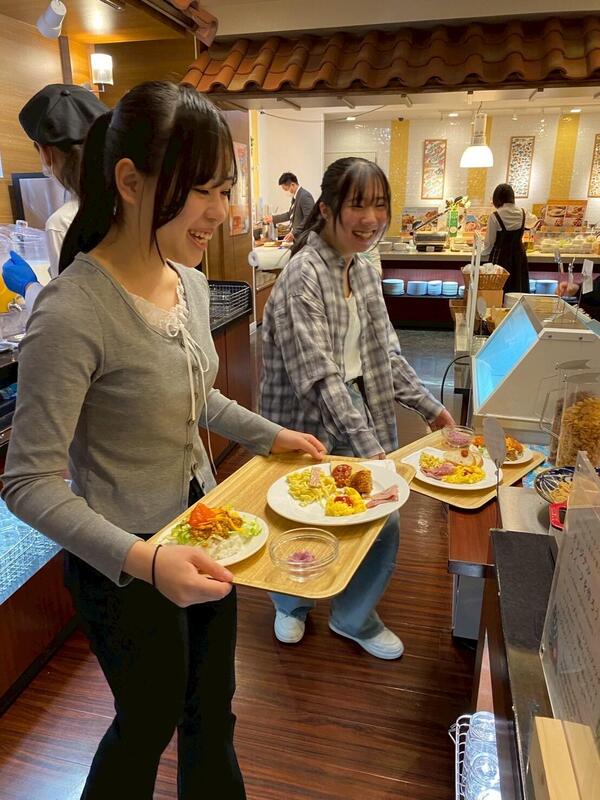 朝からホテルの豪華な朝食バイキングに舌鼓を打ちました。何度もおかわりをする姿が見られ、元気いっぱいにエネルギーをチャージしました!