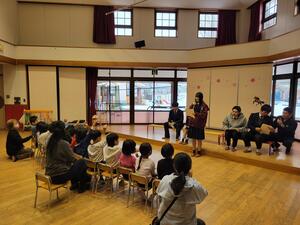 1月21日(水)、企画経営科3年生5名が、たちばな保育所にて交通安全教室を行いました。16日(金)のあみの夢こども園同様、今回も京丹後警察の方々と一緒に園児たちとブロックキューブを作成したり、横断歩道の歩き方の実演や説明を行い、園児の皆さんに楽しく学んでいただけるように取り組みました。最後には園児から学んだことの振り返りとして感想をいただき、とても楽しく学んでもらうことができました。