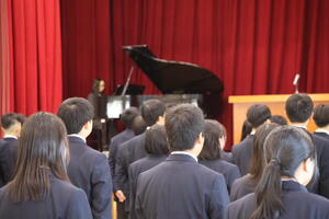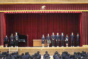 式辞で後藤校長は、様々な情報を前にした時の心構えや、真実だと判断する能力(情報リテラシー)について話をしました。70年以上も前に発刊されたある本の一節を引き、"真実を見極める力"は、今も昔も変わらず大切なことだと話しました。そのうえで、同じニュースであっても他のサイトや違う情報源の情報と比べてみること、反対意見についても拒絶せずに考えてみること、そのニュースは"事実"なのか"意見"なのかを考えてみること。これらのことを意識して、これからも真実を見極めながら様々な情報に接してほしい、と生徒に願いました。