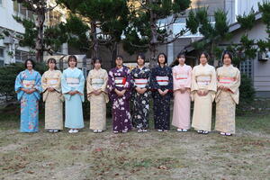 3名の講師の先生にお越しいただき、着物の着方を教わりました。初めて着物を着る生徒も多く、苦戦しながらも助け合い学ぶことができました。