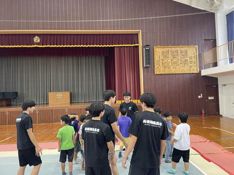 9月28日(土)に宇川保育所様からの御依頼により、宇川小学校体育館を会場に体操部の演技披露を行いました。