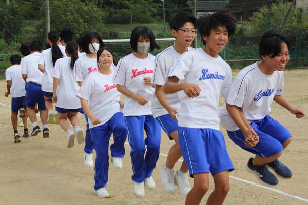 体育祭リハーサルを、9月17日(水)の5、6限に実施しました。空模様が怪しかったので、各学年の団長決意表明、競技練習をグラウンドで、体育祭リハーサルを体育館で行いました。各学年とも優勝を目指し、暑い中、熱く練習に励みました。
