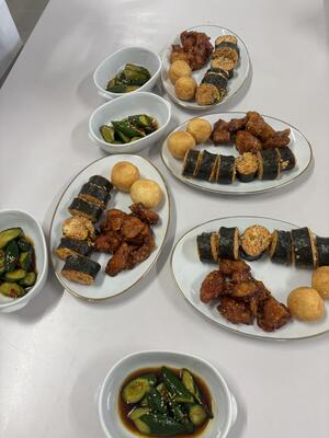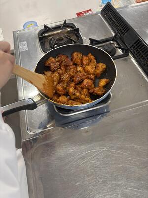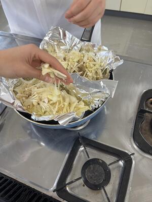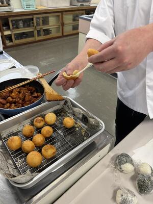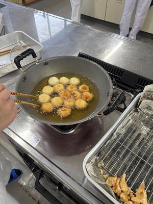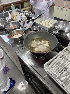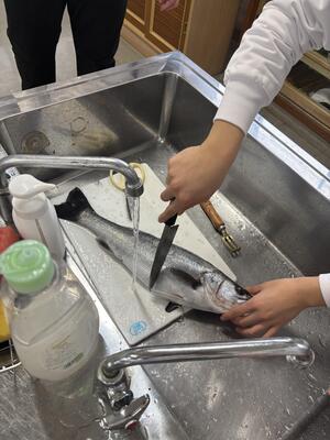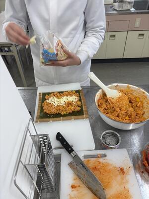 1月20日(火)に紫野和久傳さんを講師にお招きし、わくわくキッチン3回目(3年生)創作料理を行いました。和食、韓国、沖縄料理と3班に分かれてそれぞれ料理を作り、和食では、スズキの三枚おろしを教えて頂きました。韓国料理は、ご飯の味付け、ノリの巻き方、鶏肉のから揚げ時間などを教えて頂き、沖縄料理では修学旅行で食べたタコライス、サーターアンダギーを作り低温でゆっくりと揚げることを教わりました。最後に3年生の生徒は、2年間教えて頂いたことを4月からの1人暮らしの生活に生かしていきたいと挨拶をして終了しました。