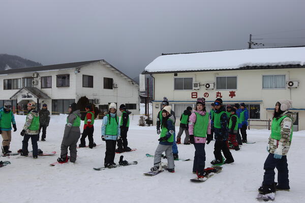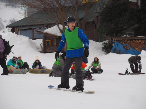 生徒の中には初心者も多く、初めは転び方や板やボードの扱い方についてレクチャーを受けました。慣れないことに全力で食らいつき、全力で楽しもうとしていました。だんだん滑れるようになった生徒も増え、午後からは各々、好きなコースを滑って自由気ままに過ごしていました。