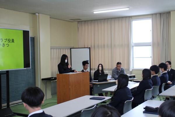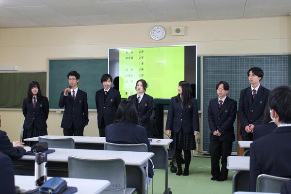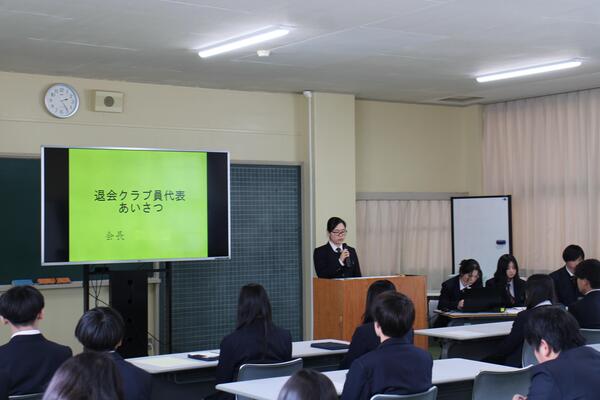 3年生を含む旧役員が進行をし、今年度の事業報告を行いました。その後、1・2年生の新役員で3年生の退会式を行いました。