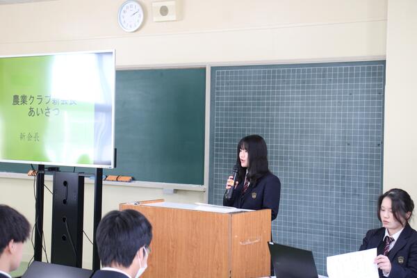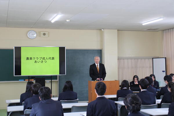 卒業生へ学舎長と農場部長、新会長からメッセージがあり、卒業生を代表して農業クラブ前会長から、今後の活動についての期待や助言を伝えてくれました。