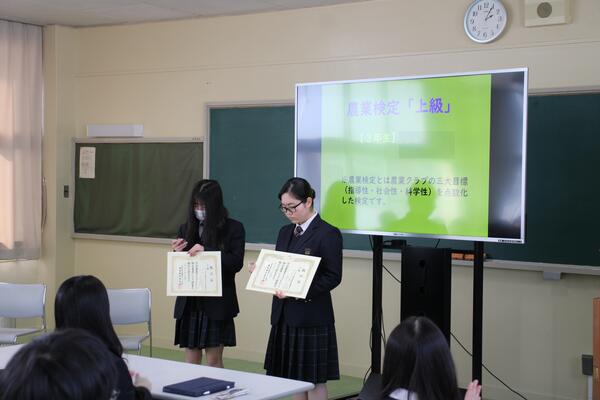 3年生の登校日に合わせて令和7年度の丹後緑風高校の農業クラブ総会・退会式を行いました。