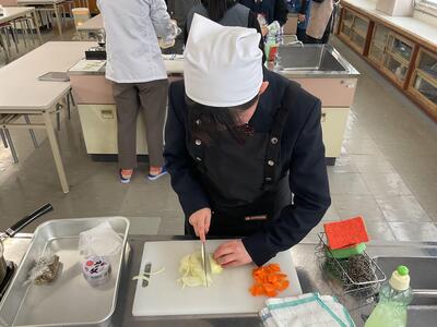 みらいクリエイト科の1年生と、アグリサイエンス科の2年生が、家庭基礎の時間に災害時の調理実習を行いました・...