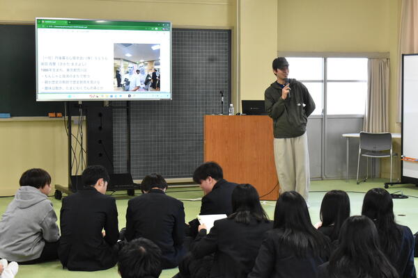 開校記念日では、校長が全校放送を行い本校の歴史や使命などの本校が設置された意義について話しました。