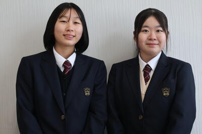 2学期終業式の後、新生徒会の承認式が行われました。新しい生徒会長と副会長の二人...