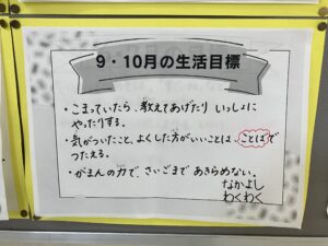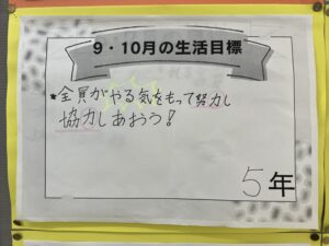 各学級で、具体的にがんばることを決めて、日々振り返りながら大きく成長してほしいと思います。