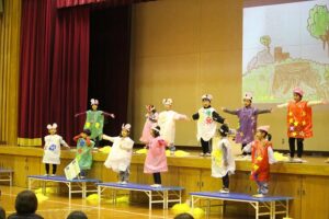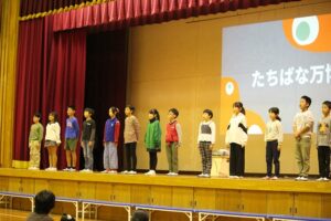 10月のマラソン大会で伸ばした「3つのたちっ子パワー(今がんばるるパワー・今よりよくなるパワー・今みんなでがんばるパワー)」を、この学習発表会に向けた取組でも、さらに伸ばすことができました。特に「今よりもよくなるパワー」が大きく伸びたと感じています。その理由として、見ている人に分かりやすい発表にするためには、どんなセリフにすればいいのか?どんな動作をつければいいのか?そうしたことをみんなで考えながら練習を重ね、どんどん良い発表になっていったからです。そして、発表会本番は、どの学年も、みんなで協力しながら素晴らしい発表を見せました。全校音楽でも心を一つに一生懸命に歌う姿から橘小学校の一体感を感じました。